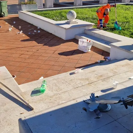 Buste, bottiglie e bicchieri abbandonati sul pavimento. E poi vasi di terra svuotati sulla piazza. Il commento dell’assessore Orta