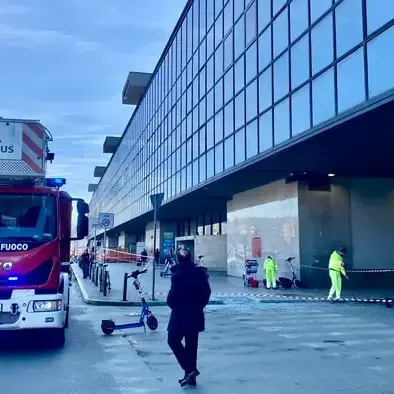 Da uno dei pannelli che rivestono la struttura, all'ultimo piano dell'edificio, si sono staccati dei vetri che sono poi precipitati a pochi metri dall'ingresso principale e nei pressi delle strisce pedonali. Fortunatamente in quegli istanti non c'erano passanti
