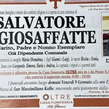 Aveva 91 anni, i funerali si terranno domani pomeriggio a Penne