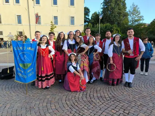«San Francesco, la Porziuncola e il Perdono di Assisi. San Celestino V, Santa Maria di Collemaggio e la Perdonanza celestiniana. Assisi e L’Aquila», continua Biondi, «mai come in questo momento storico, con la forza del loro portato secolare, si uniscono nella preghiera di una pace che appare irrealizzabile contro il rumore sempre più invasivo delle armi, la cieca distruzione, la ragione che disconosce l’umanità». Ad ascoltare Biondi anche il senatore Etel Sigismondi, coordinatore regionale di FdI: «Amo Assisi anche per un altro motivo: qui ho conosciuto mia moglie». È Ersilia Lancia, assessore comunale dell’Aquila, anche lei FdI. Ai lati della piazza ci sono i gruppi abruzzesi: le donne di Scanno con i loro abiti e il tradizionale Corteo nuziale, il gruppo storico Città di Popoli, l’associazione Laccio d’amore di Penna Sant’Andrea e Il Mastrogiurato di Lanciano con i tamburi.