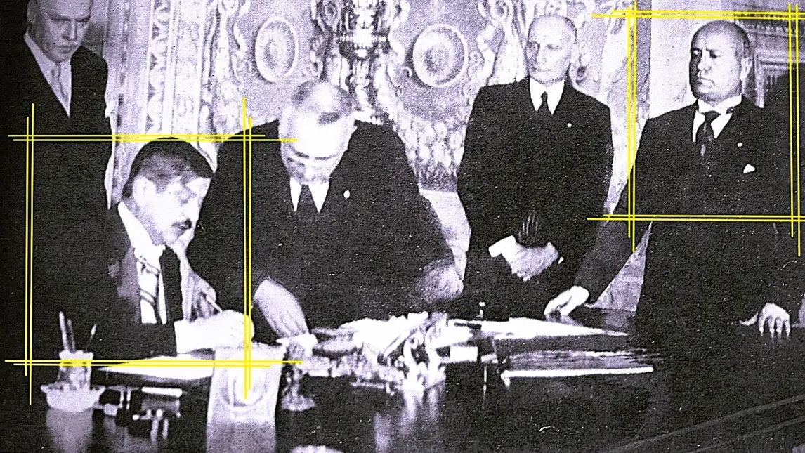 Oggi, ma nel 1940, a Vienna, nella sala dorata del Musikverein, si teneva la prima edizione del concerto di Capodanno dell’Orchestra filarmonica cittadina, fondata nel 1842 e diretta da Clemens Krauss (nella foto, particolare, proprio nella serata in questione), viennese del 1893, specializzato nell’opera della famiglia Strauss, dedicata a Johann Strauss figlio, ritenuto il re del valzer. Era il primo concerto di capodanno della storia organizzato in quel modo. Con tanto di svastiche naziste alle pareti. E presenza della delegazione tricolore spedita da Benito Mussolini che, con il Fuhrer aveva stretto il Patto d'acciaio, il 22 maggio 1939.