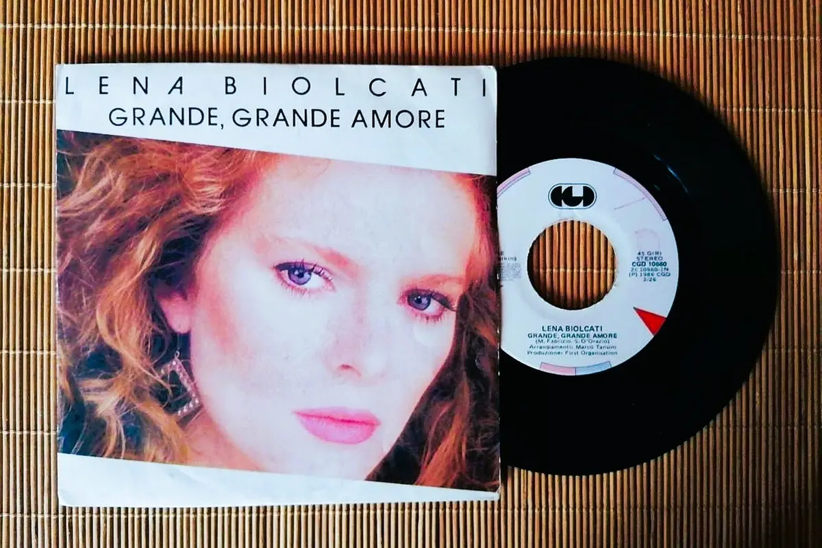 Oggi, ma nel 1986, a Sanremo, in provincia di Imperia, nel giorno di San Valentino, cantando proprio d’amore, Lorena “Lena” Biolcati, di 26 anni, di Galliate, in provincia di Novara, col brano intitolato appunto “Grande grande amore”, accedeva alla finale della sezione giovani del 36° Festival della canzone come data per super favorita dopo il tentativo dell’anno precedente, 9 febbraio ‘85. E il giorno dopo, 15 febbraio ‘86, infatti, rispettando fedelmente il pronostico, vincerà, con 720 punti. Gli addetti ai lavori la considereranno la più professionale in gara e quella con la voce più potente iscritta alla competizione. Avrà la meglio sulle nuove proposte della kermesse canora della Città dei fiori tra: Lanfranco Carnacina, già presente nell’85, con “E camminiamo”; Aleandro Baldi, esordiente, con “La nave va”; il duo dei Meccano (da non confondere col trio spagnolo dei Mecano, scritto con una sola “c”), cioè Walter Bassani e Nadia Bani, esordienti, con “Ipnotica”; Giampiero Artegiani, già ospite nell’edizione del 1984, con “E le rondini sfioravano il grano”; i Chiari e Forti, ossia Ottavio Angelillo e Giacomo Coccola, esordienti, con “Come una guerra”; Francesco Hertz, esordiente, con “Ma non finisce mica qui”. La musica era stata composta da Maurizio Fabrizio e il testo era stato scritto da Stefano D’Orazio, batterista dei Pooh nonché suo compagno. Quest’ultimo aveva prodotto anche il disco (nella foto, particolare, la copertina del 45 giri rilasciato dall’etichetta discografica milanese Compagnia generale del disco, fondata da “Teddy Reno”, al secolo Ferruccio Merk Ricordi, nel 1948, col viso dell’artista in primo piano). Per arrivare a quella vittoria la Biolcati era passata attraverso la performance conquistata nell’edizione numero 35 di Sanremo, già menzionata, da debuttante, con la traccia “Innamoratevi come me”. E a sua volta aveva avuto accesso a quella opportunità grazie al trionfo al Festival di Castrocaro il 18 novembre 1984, con “Aquarius”. Contestualmente alle voci nuove, nel teatro Ariston, il 15 febbraio 1986, il gradino più alto del podio per i campioni toccherà ad Eros Ramazzotti, con “Adesso tu”. Poi, la Biolcati ci sarà nel Festival di Sanremo anche l’anno successivo, dal 4 al 7 febbraio 1987, e poi ancora dal 28 febbraio al 3 marzo 1990, totalizzando quattro partecipazioni. Ma dopo l’uscita dell’album “1990 giorni dopo”, proprio del ‘90, per la Dischi Ricordi del capoluogo lombardo, sparirà dalla scena per dedicarsi completamente alla crescita della figlia Silvia Di Stefano, nata l’8 novembre 1979. E, pur riapparendo di tanto in tanto, sostanzialmente la sua carriera rimarrà legata soprattutto alla fase d’avvio.