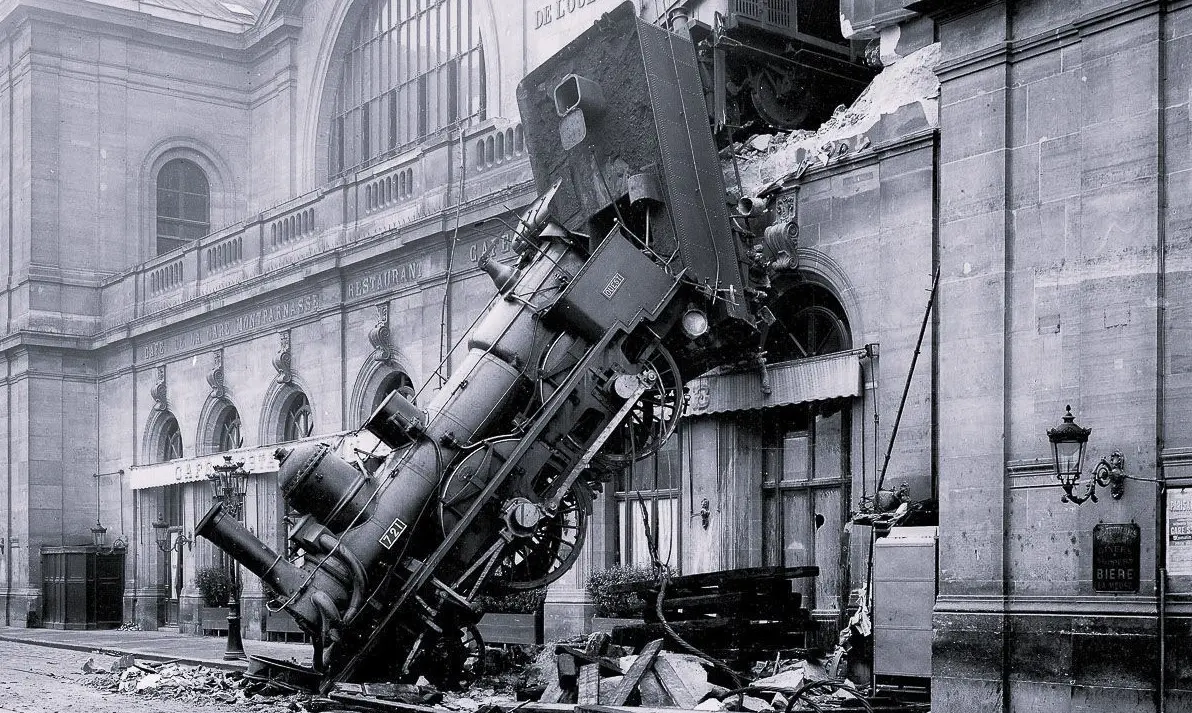 Oggi, ma nel 1895, a Parigi, nella stazione ferroviaria di Montparnasse, alle 16, deragliava il treno espresso 56 proveniente da Granville, nel dipartimento della Manica, con 131 passeggeri a bordo, condotto dal macchinista Guillaume Marie Pellerin della Compagnie des chemins de fer de l’Ouest, per guasto al freno pneumatico del modello Westinghouse. A causa della massima velocità, 40 chilometri all’ora, avallata dal capotreno Albert Mariette per tentare di recuperare il ritardo accumulato nel tragitto, la locomotiva 721 di tipo 120 usciva dalla vetrata dello scalo, restando appesa su rue de Rennes al primo dei tre vagoni per bagagli. La sciagura uccideva solo Marie-Augustine Aiguillard, di 39 anni, che sostituiva il marito nel chiosco di vendita dei giornali situato nell’adiacente place de Rennes.