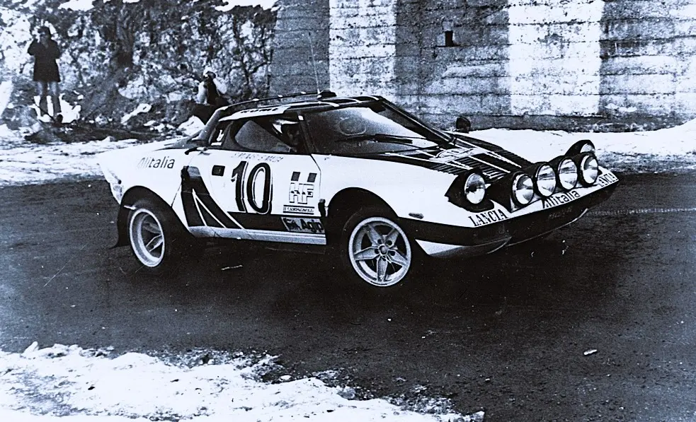 Oggi, ma nel 1976, nella città-Stato di Monaco, Sandro Munari, di 36 anni, su Lancia Stratos HF in livrea Alitalia, coadiuvato dal navigatore Silvio Maiga, sanremese di 27, si aggiudicava l’edizione numero 44 del Rally di Montecarlo affrontando la prova speciale fisso in quarta marcia per problemi al cambio e procedendo sul ghiaccio coi debuttanti pneumatici Pirelli P7 super-ribassati da pioggia invece delle più sicure gomme chiodate. Il bolide della casa torinese contrassegnata dal numero 10 era la prima della storica tripletta Lancia-Pirelli. Infatti per seconda tagliava il traguardo la Stratos dei finlandesi Björn Waldegård e Hans Elof Thorszelius e sul gradino più basso del podio saliva la coppia composta dai transalpini Bernard Darniche e Alain Mahé.