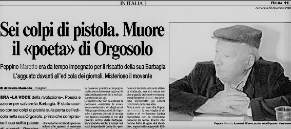 Oggi, ma nel 2007, ad Orgosolo, in provincia di Nuoro, in corso Repubblica, davanti alla chiesa di San Salvatore, un killer anonimo, che rimarrà tale, uccideva, alle 10,30 di mattina, con sei colpi di pistola calibro 7.65, Peppino Marotto (nella foto, particolare della notizia dell'omicidio, sul quotidiano comunista l'Unità, del 30 dicembre 2007), di 82 anni. Si stava recando a comperare il giornale all'edicola.
