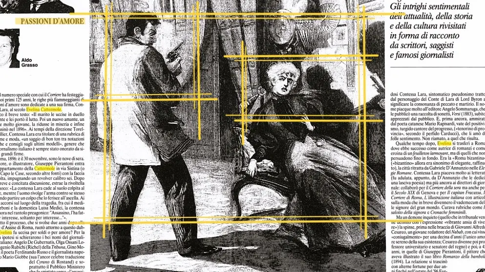 Oggi, ma nel 1896, a Roma, in via Sistina, il pittore napoletano Giuseppe Pierantoni, di 33 anni, feriva letalmente con un colpo di pistola da borsetta di piccolo calibro sparato all’addome l’amante Eva “Evelina” Cattermole, scrittrice e poetessa conosciuta nell’ambiente letterario capitolino come “Contessa Lara”, di 47, d'origine fiorentina, che morirà, di peritonite acuta conseguente allo sparo, l’1 dicembre. Dopo aver raccontato l'accaduto agli agenti di pubblica sicurezza. Poi l’illustratore-killer tentava di suicidarsi senza riuscirci. Era presente la cameriera di lei Luisa Medici.