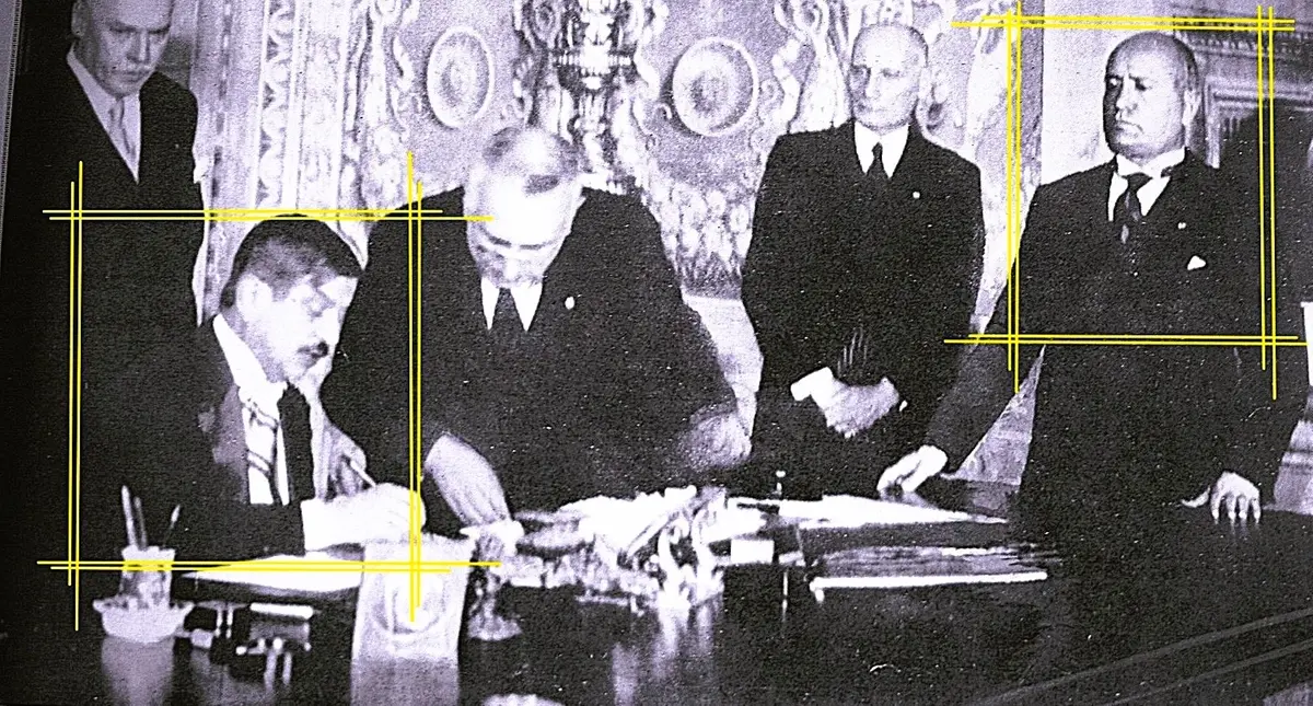 Oggi, ma nel 1935, a Roma, a Palazzo Venezia, nella Sala del mappamondo, il capo del governo Benito Mussolini, titolare anche del dicastero degli Affari esteri, e il ministro transalpino con delega agli Esteri Pierre Laval dell'esecutivo guidato da Fernand Bouisson, del Partito repubblicano socialista, siglavano l’accordo franco-italiano volto a creare l’importante fronte comune antitedesco. Il risultato della trattativa verrà ratificato a Parigi, dall’Assemblea nazionale di Francia, con legge del 26 marzo successivo, ma non gli verrà tributato riconoscimento ufficiale da parte del Parlamento del Belpaese. Scopo principale del trattato era, come già anticipato, l’alleanza strategica tra le due nazioni contro la Germania nazista nel contesto antecedente lo scoppio del secondo conflitto mondiale. In seconda battuta vi era l’ok da parte dei cosiddetti cugini d'oltralpe alla richiesta di “M” di maggiore sicurezza sul confine proprio dell'arco montano per poter concentrare uomini e mezzi nella nuova intrapresa africana dopo il via libera da parte del principale inquilino del Palazzo dell'Eliseo alle mire espansionistiche sul suolo etiope. Al terzo posto, nella scaletta di quanto pattuito (nella foto, particolare, il momento della firma da parte del rappresentante francese, originario di Châteldon, classe 1883, nello scatto tratto dal settimanale parigino “L’Illustration”, del 12 gennaio di quel 1935) vi era la rivendicazione da parte del Duce di ulteriori compensi coloniali, come la parte sud di Raheita nella Dancalia precisamente da Gibuti all’Eritrea; il villaggio di Aozou dal Ciad francese alla Libia italiana, rispetto a quelli previsti dalla stipula londinese del 26 aprile 1915 che aveva già assegnato all’Italia sia l’Oltregiuba che il Sahara libico. Tutta la vicenda verrà sviscerata dal giornalista Roberto Festorazzi nelle 376 pagine del volume intitolato “Laval-Mussolini l’impossibile Asse. La storia dello statista francese che volle l’intesa con l’Italia”, che sarà pubblicato dall’editore Mursia, di Milano, nel 2011