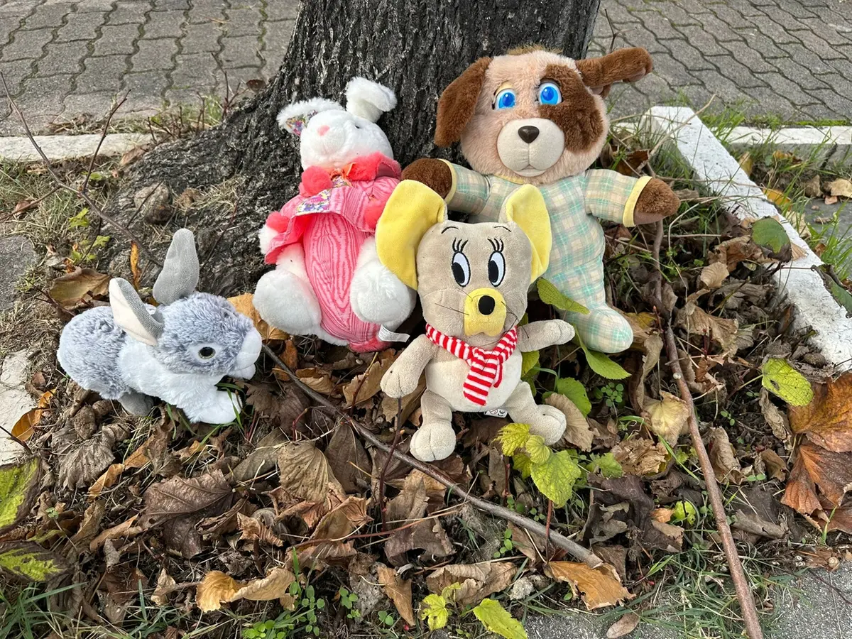 Anziano lascia dei peluche davanti alla casa famiglia in cui sono stati portati i bimbi del bosco