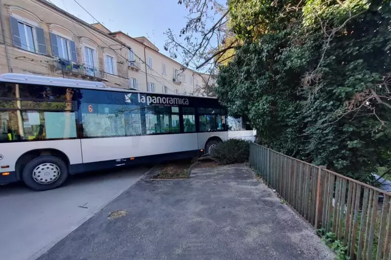 Bus di linea si sfrena in centro a Chieti: ferito un passante e sfondata una balaustra / FOTO