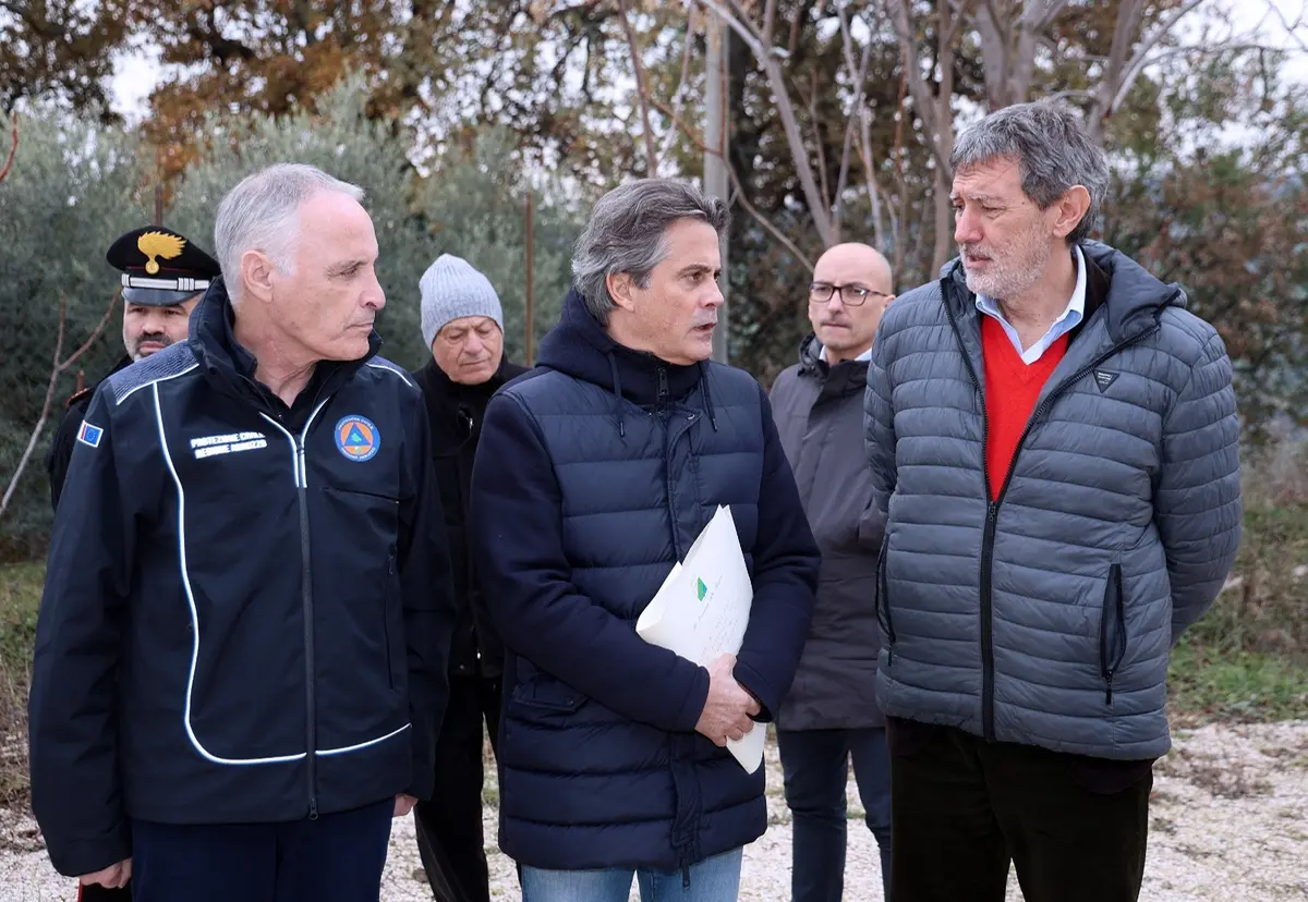 BUCCHIANICO. «Siamo la prima realtà in Italia che potrà beneficiare della nuova legge nazionale, la 40 del 2025, che disciplina la ricostruzione dopo le calamità». Così il presidente della Regione, Marco Marsilio, in qualità di Commissario straordinario per la ricostruzione post-frane nei territori di Chieti e Bucchianico, a margine del sopralluogo effettuato questa mattina in località Piane, nel Comune di Bucchianico. L’area, dal 2023, ha subito un importante movimento franoso che ha costretto 8 famiglie a lasciare le loro abitazioni. All’incontro hanno partecipato tra gli altri il direttore dell’Agenzia regionale di Protezione civile, Maurizio Scelli, il direttore dell’Ufficio speciale per la ricostruzione Sisma 2016, Vincenzo Rivera, e il sindaco di Bucchianico Renzo Di Lizio.