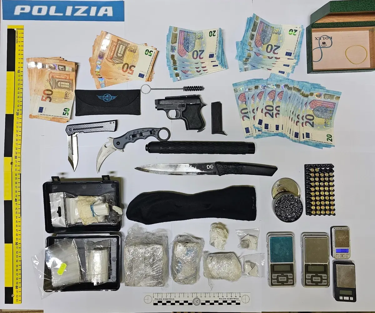 In casa vi era anche il fratello maggiore. L’uomo deteneva una pistola scacciacani con canna modificata e idonea al fuoco, due bilancini di precisione, 2500 euro in contanti, circa 600 grammi di hashish e materiale di confezionamento. Tutto il materiale è stato sequestrato e i due ragazzi sono stati condotti nella casa circondariale di Madonna del Freddo, accusati di spaccio di sostanze stupefacenti, detenzione di arma da fuoco clandestina e resistenza a pubblico ufficiale.