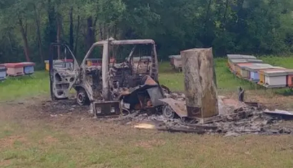 L’allarme è scattato all’alba. Il mezzo è stato ritrovato completamente distrutto in contrada Elcine: scattano le indagini dei carabinieri