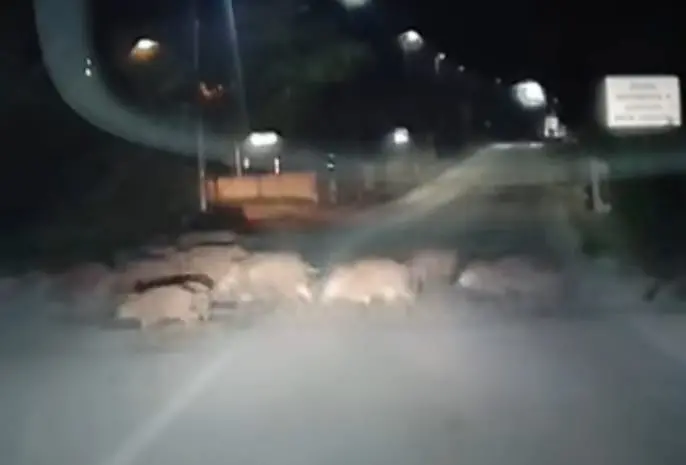 Oltre 20 esemplari vicini alle case in via San Sisto sabato sera. Il branco ripreso da un residente mentre attraversava la strada, si è avvicinato alle abitazioni