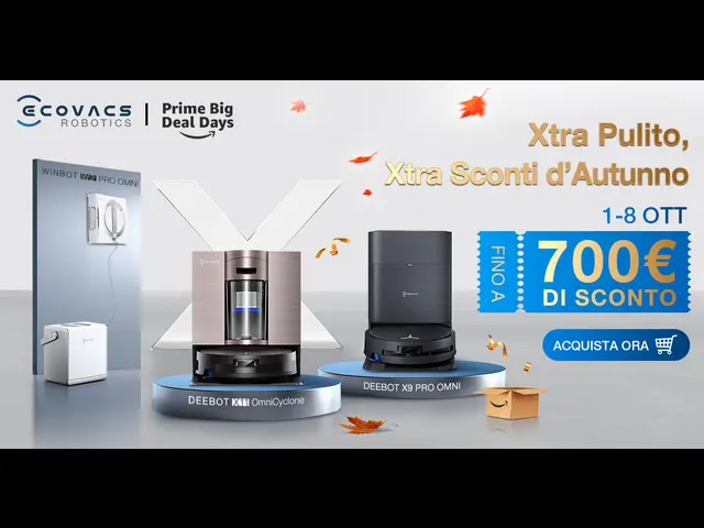 L’autunno porta grandi novità per gli amanti della tecnologia e della casa smart: dal 7 all’8 ottobre , in occasione del Prime Day Fall di Amazon, ECOVACS ROBOTICS , leader mondiale nella robotica domestica, propone sconti imperdibili su una selezione di robot per la pulizia di pavimenti e finestre. Un’occasione unica per scoprire l’innovazione e la versatilità dei dispositivi ECOVACS, con promozioni che permettono di risparmiare fino a 700€ , anche sui modelli di punta.