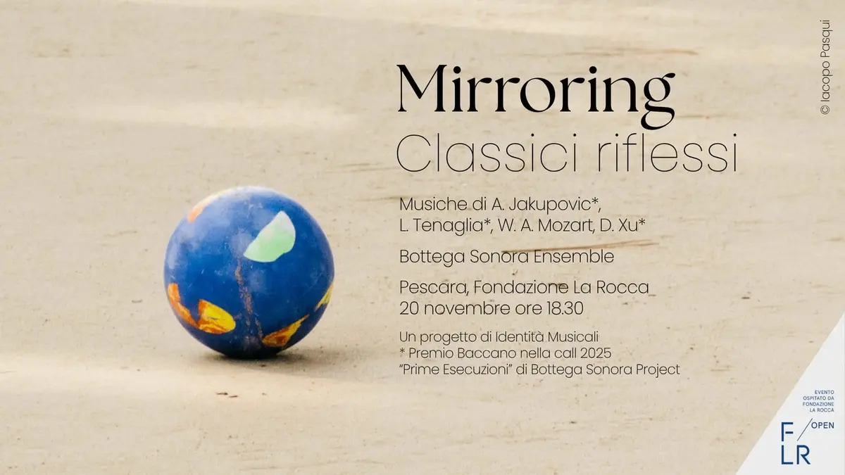 PESCARA. Si conclude con il secondo e ultimo appuntamento la nostra piccola rassegna di concerti Mirroring. Classici riflessi, realizzata da Identità Musicali Ets e dall’Ensemble Baccano e dedicata al dialogo tra musica classica e contemporanea. Un gioco di riflessi che intende rendere più immediato l’incontro con la musica di oggi. Il concerto, realizzato in collaborazione con il collettivo Bottega Sonora nell’ambito del Bando Prime Esecuzioni, si terrà giovedì 20 novembre alle ore 18.30 presso la Fondazione La Rocca a Pescara (via Paolucci, 71).