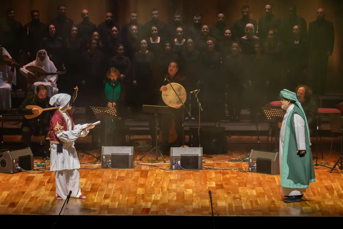 Lo spettacolo unisce attori e musicisti: l’ensemble arabo con oud (Amir Ayyad) e violino (Ahmad Barakat) , il Maqam Choir diretto da Sarine Mohammed, e i Tamburi del Vesuvio guidati da Nando Citarella, insieme a Gabriella Aiello, Tommaso Sollazzo, Valerio Mileto, Nino Conte e Pietro Pisano. Sul palco di Doha si è creato un un “ponte sonoro” che riflette la natura stessa del Mare Nostrum, il Mediterraneo. Nel racconto, Salem – interpretato da Salem Hussain Al Jahwashy – riceve l’invito di Pulcinella per la grande festa dei 2500 anni. Parte da Doha con una valigia in caso «di emergenze musicali», ma ogni volta che prova a salpare si risveglia nello stesso porto. «C’è qualcosa che non va», dice. È il dolore dell’autore a impedirgli di partire. Salem allora scuote e invoca Abu Maria: «Lo so che sei addolorato, ma fammi arrivare a Napoli». Convinto l’autore, Salem approda finalmente nella città del sole. Entra cantando ’O paese d’ ’o sole, ma capisce subito che qualcosa non torna: «Il Vesuvio fuma e Pulcinella non lo riconosce. Perfino lui ha perso la memoria. Il dolore dell’autore ha contaminato Napoli, di solito immune alla tristezza». Salem allora comprende che la sua missione non è festeggiare, ma guarire. «Non è venuto per divertirsi e mangiare la pizza», dice Cerroni «ma per aiutare gli altri, anche arrabbiandosi con l’autore». Dalla valigia tira fuori uno scrigno: la musica madre andalusa. Le melodie si riversano sulla scena, Pulcinella ritrova sé stesso, la città si illumina. «Ho paura di questo silenzio roboante che alla lunga uccide», confessa l’autore. Ma Salem risponde: «No, qui si può resistere. Attraverso la musica, difendendo le proprie radici». Il regista stesso lo ripete «quando non sai come dire una cosa, devi metterla in musica, devi cantarla!». È la chiave del suo lavoro: la musica come lingua che scioglie il dolore quando la voce umana non basta più. Il finale è un’esplosione di luce e unità. «Esce il sole, arriva un’ora di musica», racconta Cerroni. Sul palco, uno accanto all’altro, tutti gli artisti – arabi e italiani – chiudono lo spettacolo cantando insieme, trasformando la scena in una piccola piazza mediterranea. «Salem e Pulcinella diventano presentatori di un grande programma musicale, poi si salutano. Salem torna a Doha: mi porto la valigia, ma la musica rimane». Per Cerroni, Maqam è stato un rito personale: «Non era una marchetta. Ho dovuto buttare fuori questo dolore». E il pubblico qatarino? «Del popolo pensano bene, si innamorano. Sono rimasti colpiti dall’onestà intellettuale di un europeo che riconosce loro il ruolo nella nascita di questa musica che ha generato figli in tutto il Mediterraneo». Lo spettacolo ora potrebbe arrivare proprio a Napoli. Per chiudere davvero quel viaggio iniziato nel porto di Doha e riportare la musica madre là dove tutto aveva smesso, per un momento, di suonare.