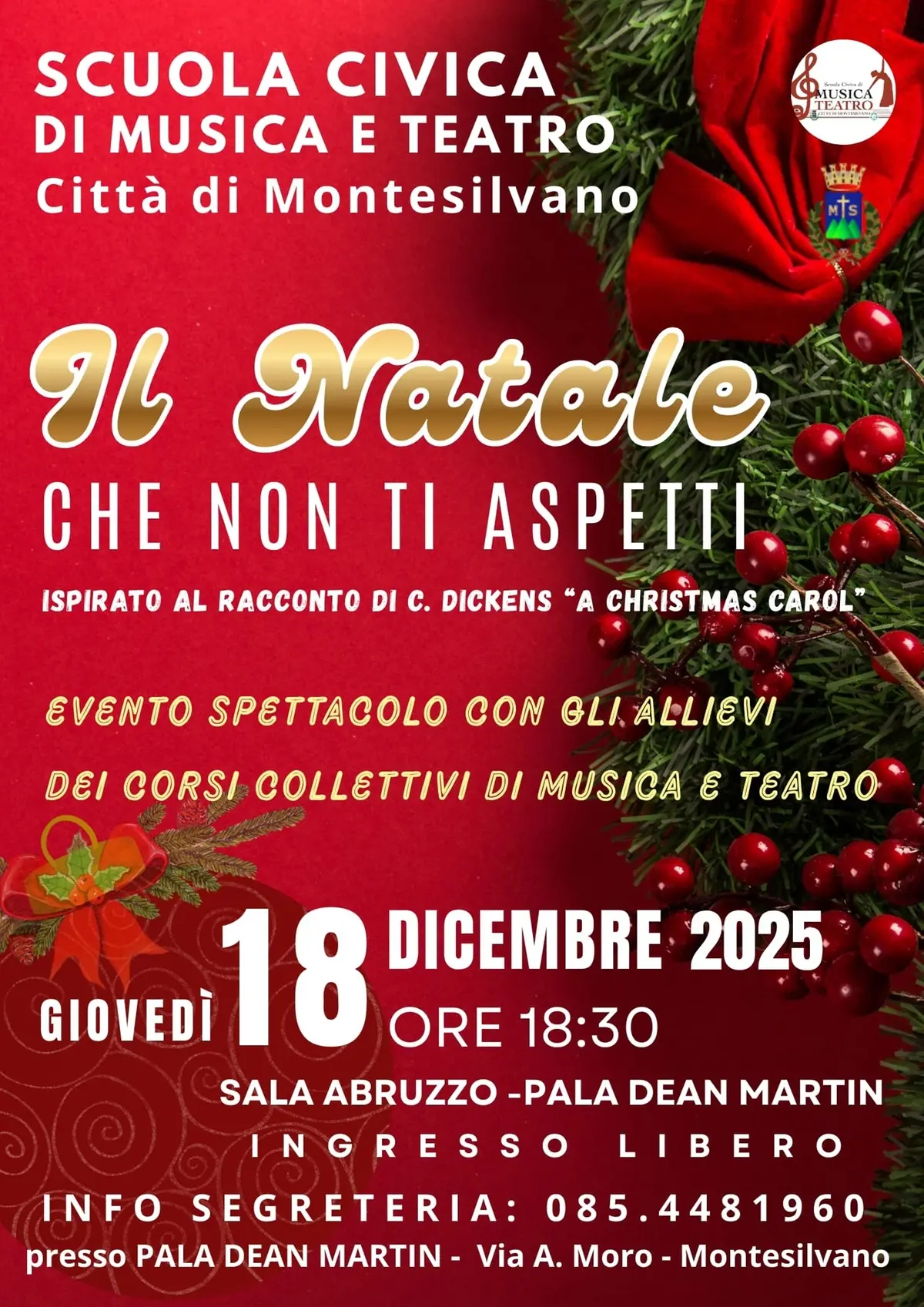 MONTESILVANO. Il 18 dicembre sarà possibile vivere la magia del Natale sul palco del Pala Dean Martin con la Scuola civica di musica e teatro del Comune di Montesilvano. Giovani e adulti uniti dalla passione per l'arte daranno vita a una serata emozionante, ispirata alle atmosfere senza tempo del capolavoro di Charles Dickens, "A Christmas Carol".