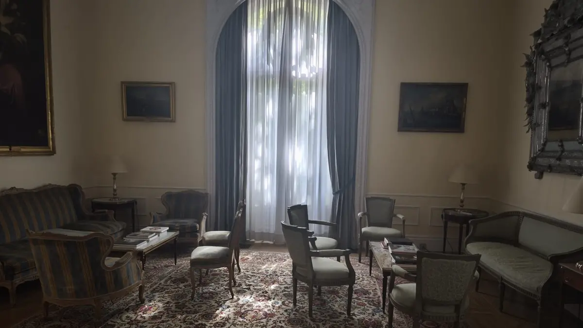 La vita a palazzo si articola in tre piani: al piano terra cucine e magazzini, primo piano le stanze per gli incontri istituzionali e una chiesetta, al secondo piano l’appartamento privato dell’Ambasciatore e al terzo gli uffici. Dal soffitto al primo piano scendono grandi lampadari di cristalli, sui mobili in legno massello le foto degli incontri più importanti dell’ambasciatore con le autorità, ma anche momenti di vita privata come un abbraccio con la moglie. Sale per gli incontri istituzionali ma non solo: nel palazzo ci sono anche una stanza dedicata al biliardo, una alla lettura e una chiesa per le cerimonie strette