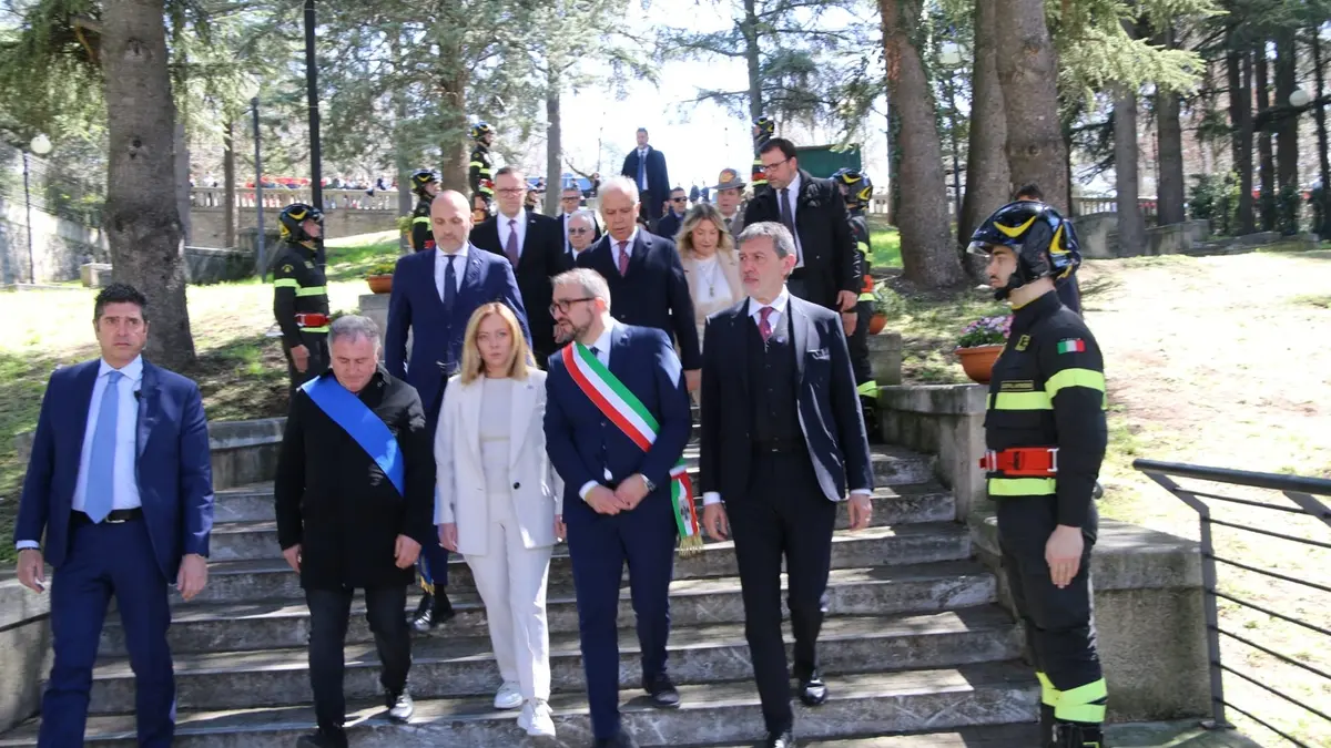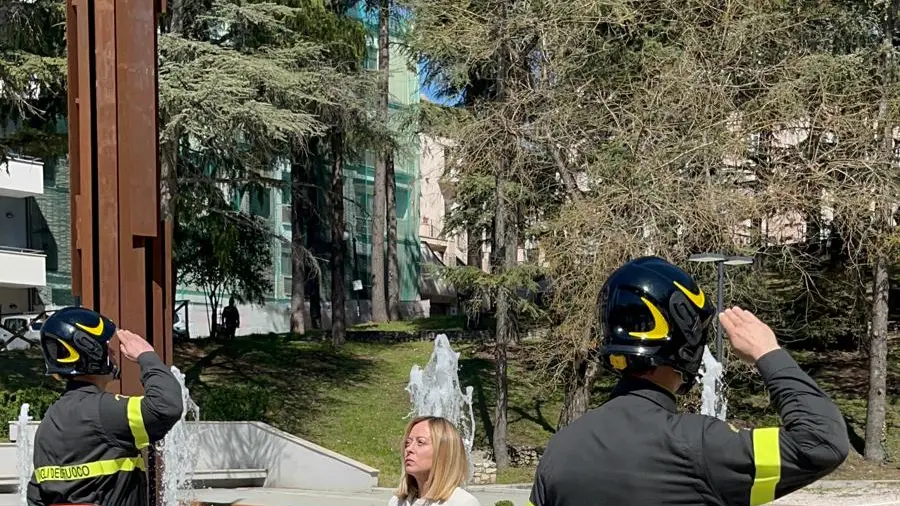 Questa mattina all'Aquila, in occasione della cerimonia del giuramento del 99° Corso allievi Vigili del fuoco, la premier Meloni ha visitato il Parco della Memoria. Insieme a lei era presente anche il presidente Marsilio