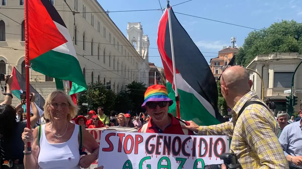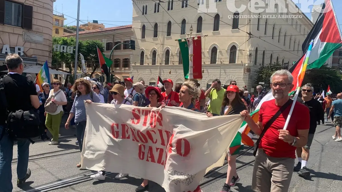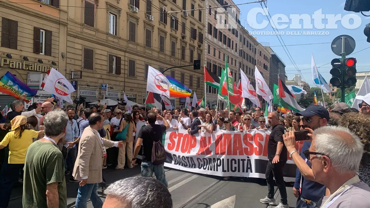 Si è tenuta oggi a Roma la manifestazione per Gaza. Tra i partecipanti al corteo anche il leader del M5S, Giuseppe Conte, e la segretaria del Pd, Elly Schlein, con quest'ultima che ha dichiarato: "È una piazza molto unitaria e inclusiva, lo sentite anche dal palco dove si alterneranno testimonianze di associazioni, ma anche di palestinesi e anche di israeliani che stanno manifestando contro Netanyahu e contro il cinismo di un governo che sta portando avanti un massacro per i propri fini politici. È una piazza che finalmente vede le forze politiche assumersi la responsabilità di rispondere a una richiesta fortissima che abbiamo sentito dal basso. E lo vedete in questa magnifica piazza trasversale, aperta". Presenti altresì i Giovani Democratici dell'Abruzzo, che hanno intonato cori pro Palestina.
