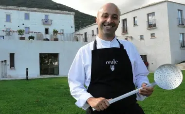 Duemilaquattrocento metri quadrati dell’ex convento cinquecentesco (attentamente recuperato), immersi nel verde con vista su boschi e montagne abruzzesi e molisane dell’Alto Sangro. «Ci stavo un po’ stretto a Rivisondoli» ammette. Lì è cresciuto fino a dieci anni (ora ne ha 37), «ma sono nato nell’ospedale di Castel di Sangro» precisa, e lì dal 1999 ha condotto il ristorante Reale, inizio della sua fortuna. Lì a Rivisondoli, «nel paese più piccolo d’Italia col più giovane chef italiano a due stelle» come ha scritto il Corriere della Sera. «Solo un anno di distanza tra la prima e la seconda stella Michelin guadagnata. Prima di me era accaduto solo a Gualtiero Marchesi negli anni Ottanta».