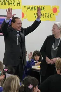 Silvio Berlusconi è tornato nelle zone terremotate all'Aquila per inaugurare la scuola Mariele Ventre. Dopo essersi trattenuto nell'edificio scolastico ed avere incontrato 300 bambini delle elementari presenti nella mensa, il premier è stato ospite a pranzo di una famiglia di Paganica