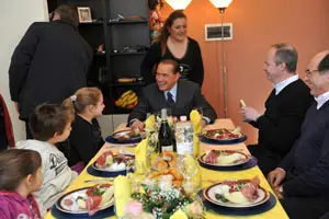 Terremoto, Berlusconi torna all'Aquilail premier pranza con famiglia di sfollati
