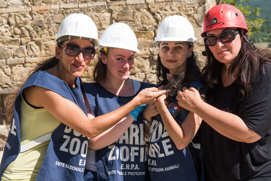 ACCUMOLI. Alessandra, Valentina, Roberta e Isabella sono quattro guardie zoofile, volontarie dell'Ente nazionale per la Protezione animali. Dai giorni seguenti al disastroso sisma del 24 agosto stanno accudendo i cani e i gatti rimasti nei centri terremotati delle frazioni deserte di Accumoli (Rieti), in quanto i loro padroni sono morti oppure non sono riusciti a trovarli quando sono andati via.