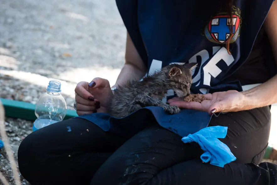 Alessandra, Valentina, Roberta e Isabella sono impegnate ogni giorno ad assistere gli animali rimasti nelle frazioni di Accumoli abbandonate dopo il sisma del 24 agosto. Nella frazione di Tino, guidate da una gatta adulta, hanno raggiunto un rovo accanto alle macerie dove hanno tirato fuori un micino magro e ferito. Subito adottato per le cure, è stato battezzato con il nome della frazione