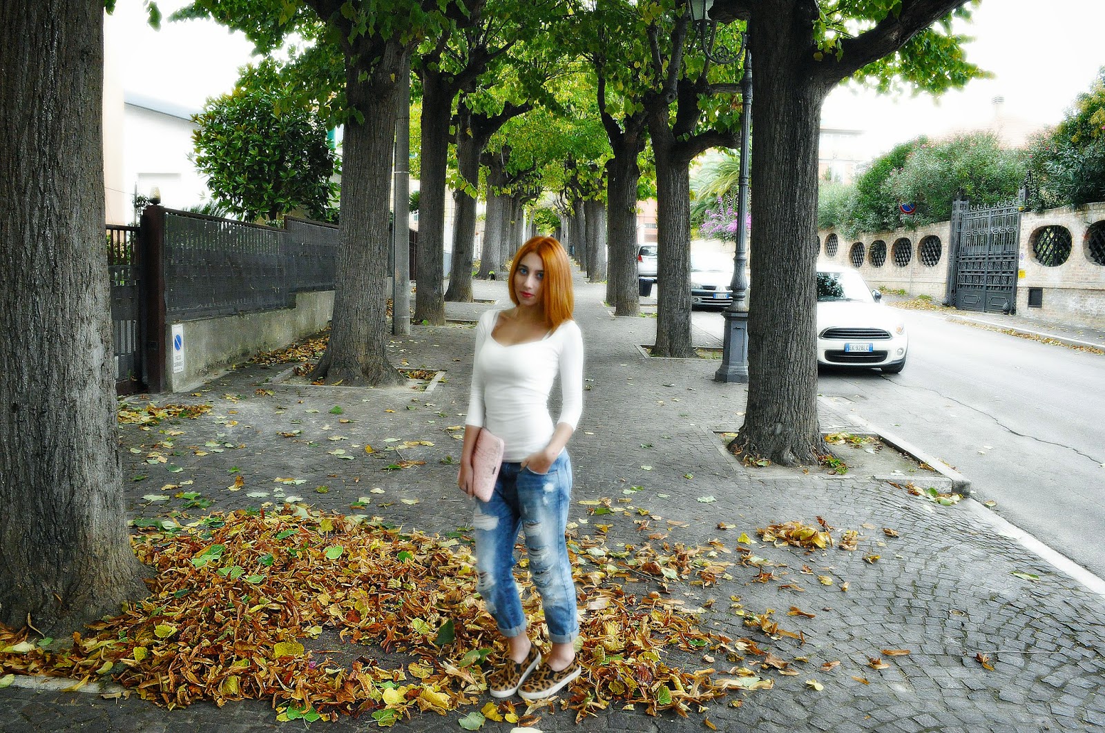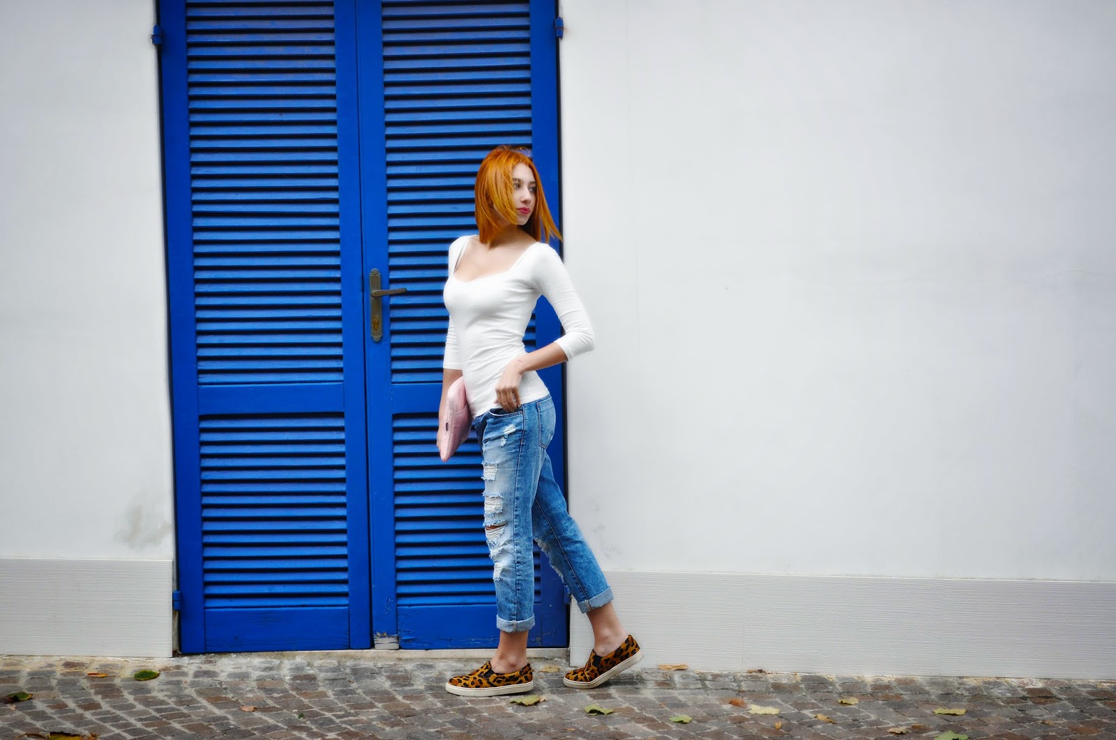 Eh già , in men che non si dica , per farla breve è arrivato l 'autunno , e quindi è arrivato anche il momento di vestirsi di più ; quello che vi propongo in questo post è il popolarissimo trio : t-shirt-jeans-sneakers , che con un pò di fantasia può diventare un ottimo look per affrontare la quotidianità : una maglietta bianca a tre quarti con scollo a cuore , jeans boyfriend , che è uno tra i miei capi-alleati per combattere la noia invernale , ed infine un paio di loafers a fantasia , colorate , per dare un tocco di vivacità .