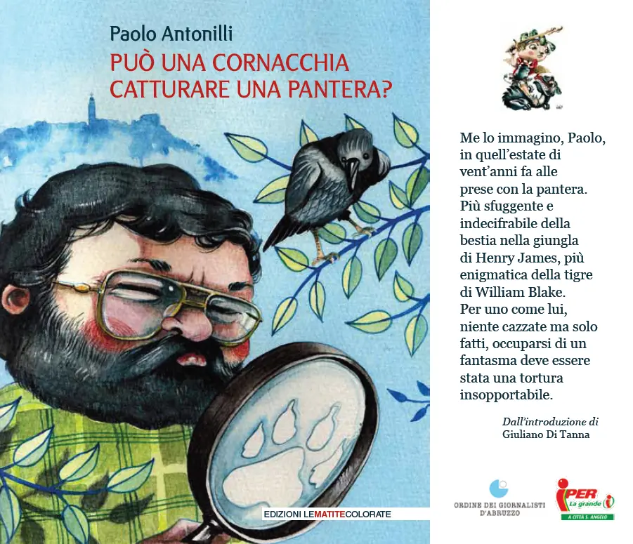 E' in vendita da questa settimana all'Iper di Città Sant'Angelo "Può una cornacchia catturare una pantera?" di Paolo Antonilli: una raccolta di 15 articoli - pubblicati nel 1994 - sulle scorribande di una pantera tra le campagne di Città Sant'Angelo e Spoltore. Una vicenda entrata nell'immaginario collettivo raccontata come un favola per ragazzi con i disegni di Yari Di Giampietro.