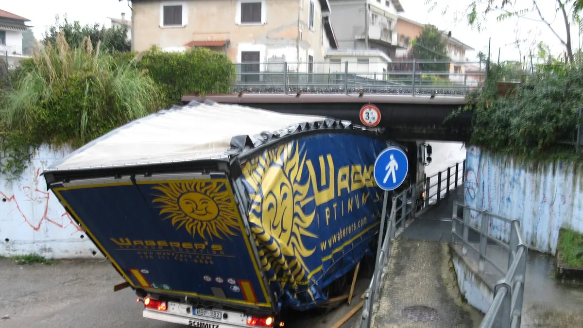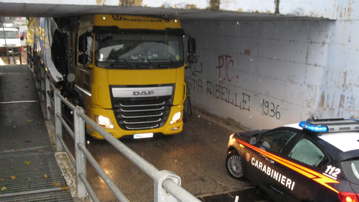 Questa mattina, in via Aterno, un mezzo pesante ungherese carico di merce è rimasto intrappolato