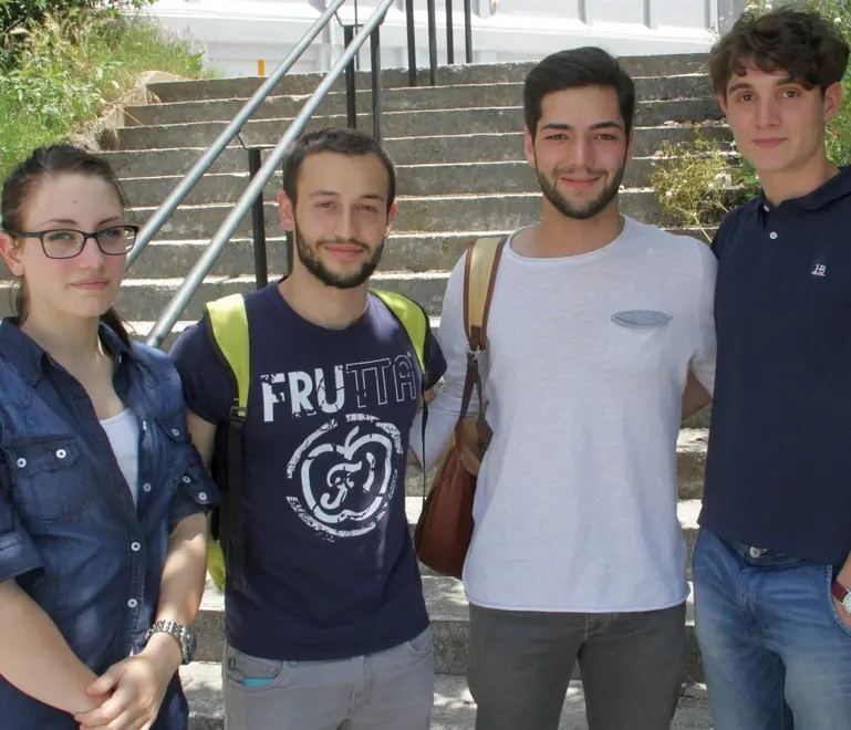 Alla ricerca di un po’ di ombra dopo la faticosa prova di matematica Giorgia Cironi, Luca Termini, Alessandro Costanzi e Mattia Di Francesco del Liceo Scientifico hanno detto: «Il primo problema sulla progettazione di un serbatoio condominiale è stato lunghissimo e difficile. Questa era la prova più temuta, ma nonostante tutto abbiamo dormito per la stanchezza. Finiti gli esami andremo a Malta in vacanza». Foto di gruppo e buonumore per le studentesse di Ragioneria Sofia Climastone, Hirijete Idrizi, Valdrina Ibrahimi e Gabriella Cucci: «La seconda prova riguardava un testo commerciale in inglese. Quello che è fatto, è fatto. Nella terza prova avremo anche cinese come materia e saremo assieme a una classe di Giulianova: gli unici in Abruzzo». Per Ludovica Corridore, Claudia Angelone e Francesca Scimia dell’Itis specializzazione Chimica «la prova era sulle tecnologie chimiche industriali e l’abbiamo svolta al meglio. Ci preoccupava più questa che la terza prova».