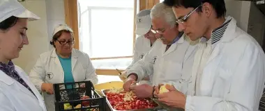 Pierino Giorgi mi porta nella cucina della mensa che non ha nulla da invidiare a quella di un ristorante di alto livello. Al lavoro ci sono due giovani e qualche persona più adulta. Il menu del giorno prevede gnocchi o minestrone (il primo di solito è a scelta) e per secondo carne, pollame, formaggi di ogni tipo. Roberto Paolucci, dipendente Enel oggi in pensione, è orgoglioso di fare il volontario alla mensa dei poveri e mentre prepara il bancone del self service mostra i bicchieri con la macedonia di frutta e dice: «Qui facciamo la macedonia più buona della città». E' bello vedere l'entusiasmo di chi nell'aiutare gli altri trova una ragione di vita mentre tutt'intorno magari c'è chi dal terremoto e dalla tragedia di una città intravede l'occasione per arricchirsi e dare una "presunta" svolta alla propria vita.