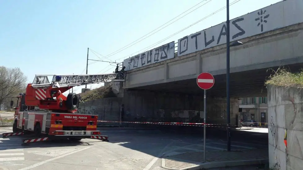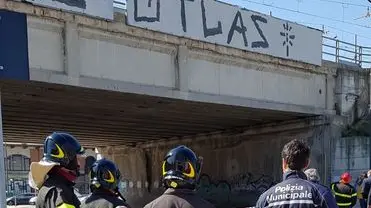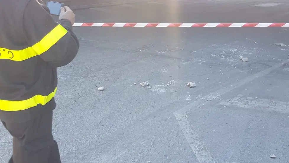 Calcinacci finiti sull'asfalto: concluso il primo intervento di messa in sicurezza dei vigili del fuoco. Il Comune: il ponte non ha subito danni strutturali