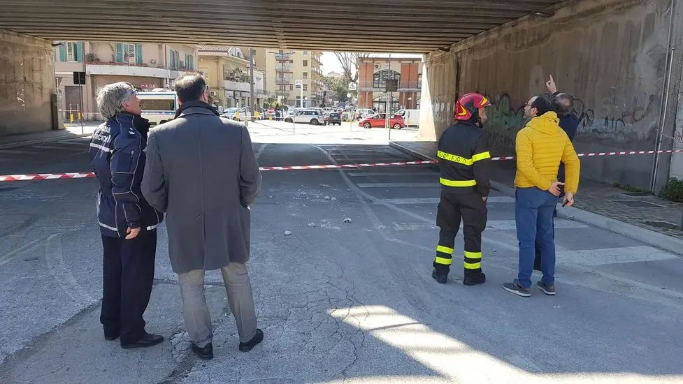 Il vice sindaco Pd e assessore ai Lavori pubblici Enzo Del Vecchio spiega che i distacchi di pezzi di cemento sono legati all'umidità: "Si è verificato il distacco di alcuni pezzi di calcestruzzo dalla trave dell’impalcato del sottopasso, effetto di usura e agenti atmosferici", dice il vice sindaco. Per questo il Comune ha disposto la "momentanea chiusura del sottopasso per la caduta di calcinacci. Sul posto vigili urbani, vigili del fuoco e dirigenti del Comune e delle Ferrovie. Dopo la rimozione delle criticità e la messa in sicurezza del sottopasso, lo stesso verrà riaperto alla viabilità. Successivamente Ferrovie interverrà per i lavori di ripristino complessivo della struttura". L'intervento è ancora in corso. Secondo il Comune, il ponte non ha subito danni rilevanti e "non presenta alcuna criticità strutturale".