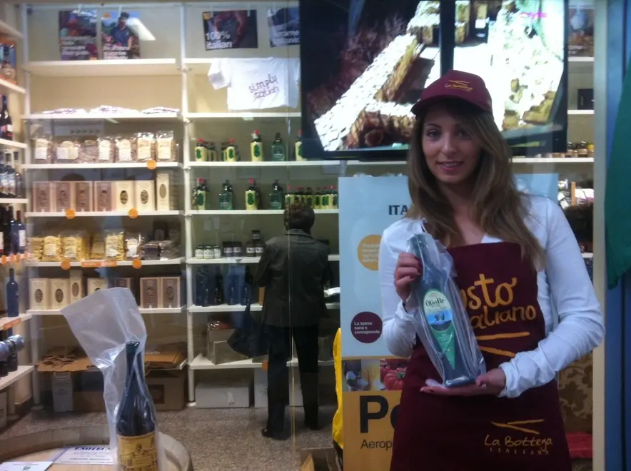 Aperta all’aeroporto la prima bottega italiana della rete di Campagna Amica rivolta ai turisti: in vendita confetture, pasta, legumi, corone d’aglio, peperoni essiccatii e saponette di latte d’asina