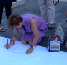 Tanti gli adulti, ma anche i bambini, che hanno preso parte alla manifestazione di protesta. C’erano più di cento persone. Tra i volti noti, quello dell’ex deputata ed ex portavoce dei Verdi Grazia Francescato, che ha voluto lasciare anche un suo messaggio sullo striscione da consegnare al sindaco. «Gli alberi sono i pilastri che sorreggono il cielo», ha scritto, «questo dicono gli indigeni dell’Amazzonia e hanno ragione».