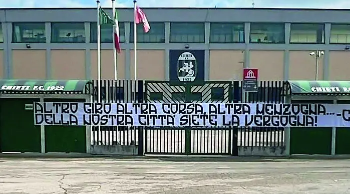 CHIETI. I tifosi del Chieti non hanno potuto seguire la squadra all’Aquila per il divieto di trasferta imposto dopo l’assalto al pullman di ritorno da Recanati, ma si sono fatti sentire con uno striscione contro la società esposto ieri mattina davanti allo stadio Angelini. “Altro giro, altra corsa e altra menzogna: della nostra città siete la vergogna”, è il messaggio degli ultrà della curva Volpi rivolto al presidente Gianni Di Labio e al patron Altair D’Arcangelo che non hanno provveduto a pagare gli stipendi ai giocatori entro il 31 gennaio. L’inadempienza comporterà una penalizzazione di quattro punti in classifica che farà scivolare il Chieti al penultimo posto, in zona retrocessione diretta. Di Labio si è giustificato con la squadra dicendo che i soldi ci sono, ma arrivano dall’estero e quindi per maturare la valuta bisognerà aspettare una decina di giorni, rimandando a metà mese il pagamento degli stipendi. La credibilità della società è pari allo zero. Anche se alle parole di Di Labio seguiranno i fatti, questo non servirà a evitare il -4 che rende tutto più complicato in chiave salvezza.