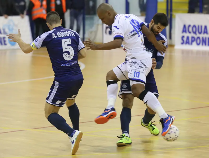 Il brasiliano è bravo a sfruttare la ribattuta di Capuozzo, dopo un tiro di Lima, e fa esplodere il palazzetto. I nerazzurri spingono e trovano il raddoppio con De Olivera, il quale conclude a rete dopo una splendida azione personale: percussione perfetta, palla sul secondo palo e gol del 2-0. Il Pescara accusa il colpo e per qualche minuto non riesce a rialzarli. E’ Leggiero, però, che scuote i biancazzurri, al 6’, con la rete del 2-1, sfruttando l’assist di Chimanguinho. L’Acquaesapone non si abbatte e va mordere gli avversari, con Jonas, che gonfia le rete, complice una leggera deviazione di un giocatore del Pescara. Colini gioca la carta del portiere di movimento con Cuzzolino e la scelta paga. Tocca di nuovo a Leggiero riportare sotto i biancazzurri, sul 3-2, e cerca di rimettere in piedi la gara. I pescaresi, però, sono spenti, distratti e non riescono ad imprimere il proprio ritmo alla gara. Ed è ancora Jonas che firma la sua doppietta personale, al 16’, con un tiro dalla distanza. Il Pescara, con il portiere di movimento (Cuzzolino), perde palla e facilita il quinto sigillo dell’Acquaesapone con Canabarro, il quale è bravo a sfruttare l’assist di Lima. La partita finisce qui tra il tripudio dei 2.000 del PalaRoma.