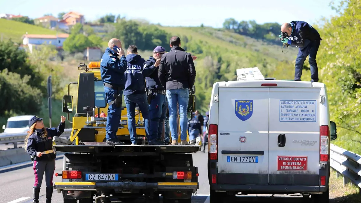 La polizia, intervenuta grazie alla segnalazione di un automobilista, sventa la rapina. Autostrada chiusa in direzione nord per quasi quattro ore. Una delle guardie giurate in ospedale per il fumo sprigionato da un fumogeno usato nell'assalto