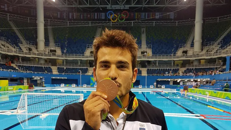 Il pallanuotista pescarese sul podio: l'Italia di Campagna ha battuto il Montenegro per 12-10