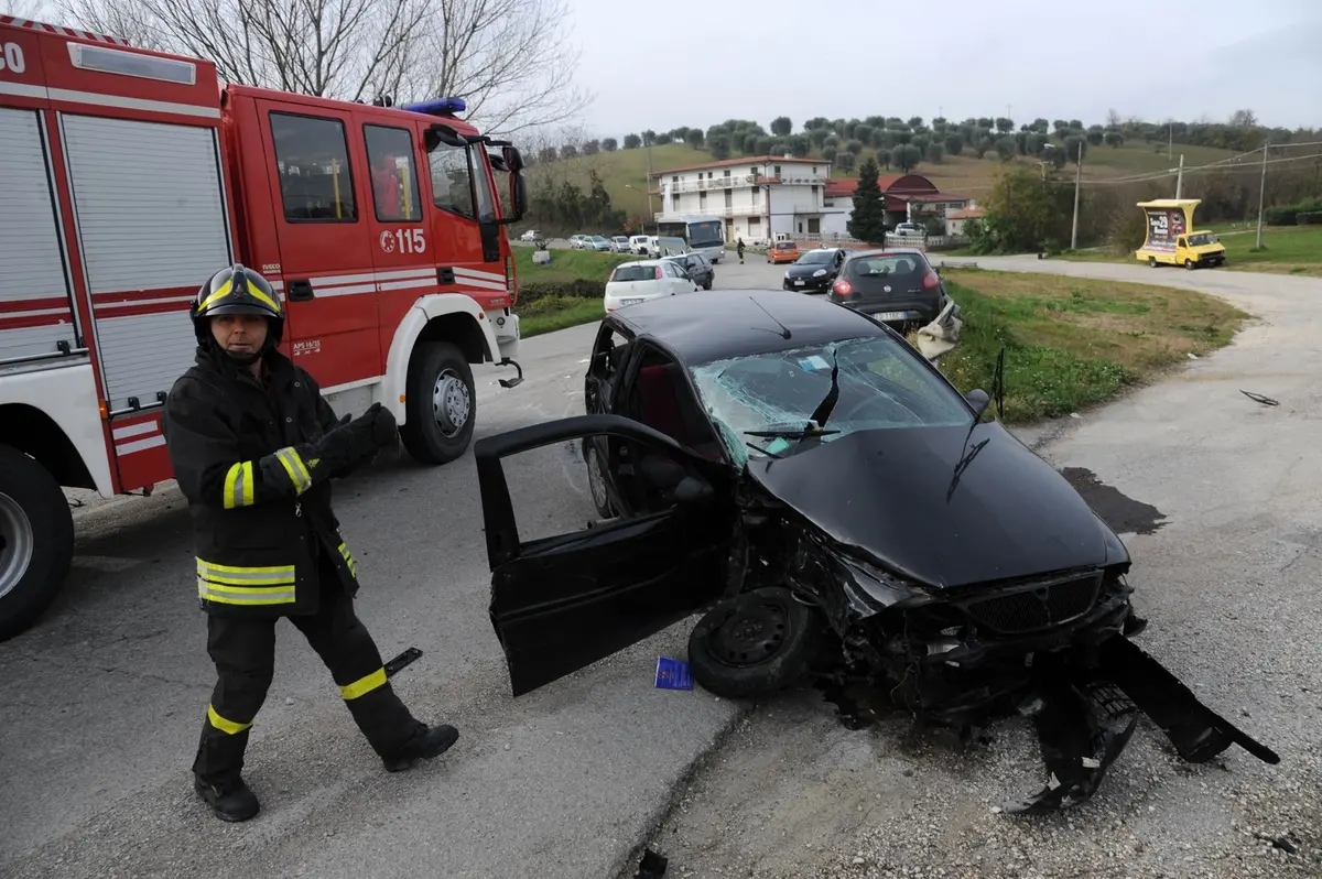 Poco prima l'auto aveva incrociato i carabinieri che si trovavano a Floriano per svolgere un'operazione di controllo con il Noe nei pressi di uno sfasciacarrozze. Alla vista dei carabinieri il conducente della Lancia Y ha accelerato sensibilimente, ma nel farlo in curva, sulla Sp 17, l'auto si è scontrata con l'altra vettura con la famiglia a bordo che nel frattempo sopraggiungeva. L'impatto è stato tremendo, tanto che il motore della Lancia Y è stato ritrovato a circa 50 metri dal luogo dell'incidente.Iniziamente sette i feriti, di cui una grave. Trasportata e ricoverata in prognosi riservata all'ospedale di Sant'Omero, dove sono stati trasportati anche gli altri feriti, la donna, Elena Di Rocco, è morta poche ore dopo.