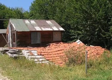 Un altro dei bungalow sembra poi essersi schiacciato completamente su stesso e a terra rimangono solo i mattoncini rossi del tetto. I pezzi del campeggio che non c'è più sono poi sparsi un po' ovunque nella zona e i cumuli di ferro, lamiere e tubi spuntano qua e là tra l'erba del piazzale. Non se la passa meglio il bosco vicino all'ex camping. Anche qui a fare da padroni sono il degrado e la sporcizia. Tra gli alberi sono rimasti abbandonate vecchio bombole del gas, rifiuti di una certa pericolosità, che spuntano come giganteschi funghi. Poi ci sono i pneumatici, del vetro, pezzi di finestre rotte e ogni altro genere di rifiuto ingombrante. Tutto ciò che rimane del campeggio sembra essere esploso nel bosco intorno che si ritrova adesso ad ospitare, al posto del colorato popolo del campeggio, i resti fatiscenti di quel che ne rimane.