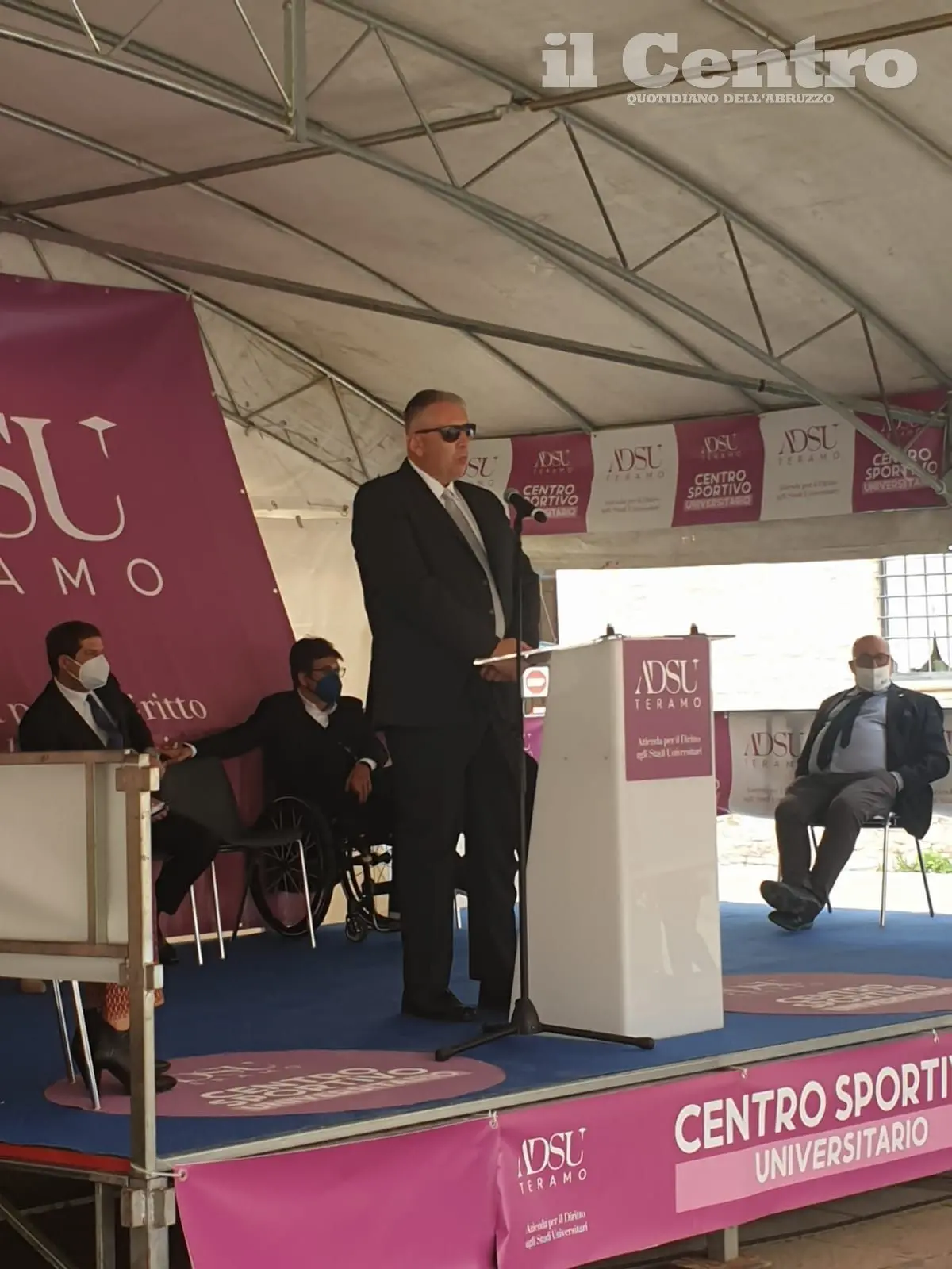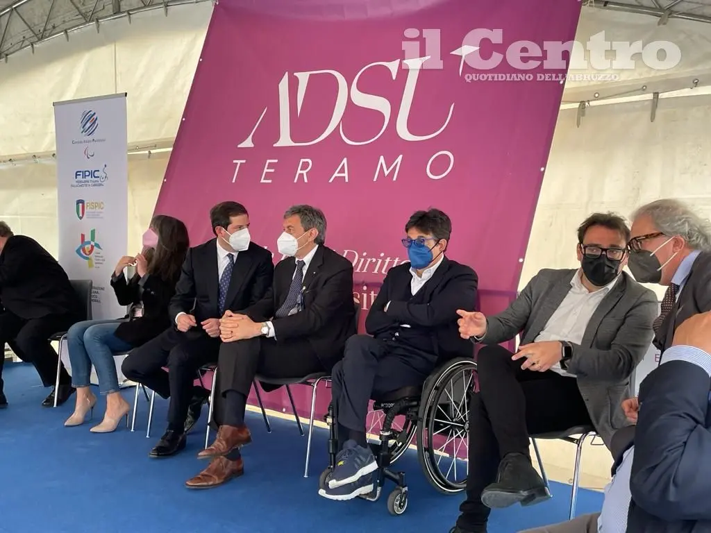 TERAMO. Realizzare un centro sportivo polivalente, accessibile a tutti gli atleti, in pieno centro, nell'area antistante la nuova residenza universitaria in costruzione a viale Crucioli. E' l'obiettivo dell'Adsu Teramo, che questa mattina ha presentato il progetto in piazza Sant'Anna alla presenza del presidente della Regione Marco Marsilio, dell'assessore regionale Pietro Quaresimale, del direttore generale della Asl Maurizio Di Giosia, del sindaco di Teramo Gianguido D'Alberto e del presidente del Comitato paralimpico Luca Pancalli.