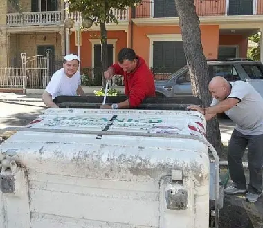 Sul lungomare centrale i cassonetti sono stati svuotati, così alcuni commercianti della zona ne approfittano per lavarli nel tentativo di eliminare il cattivo odore che emanano. «Visto che nessuno si decide a farlo», dicono i commercianti, «provvediamo in prima persona per evitare disagi ai nostri clienti».