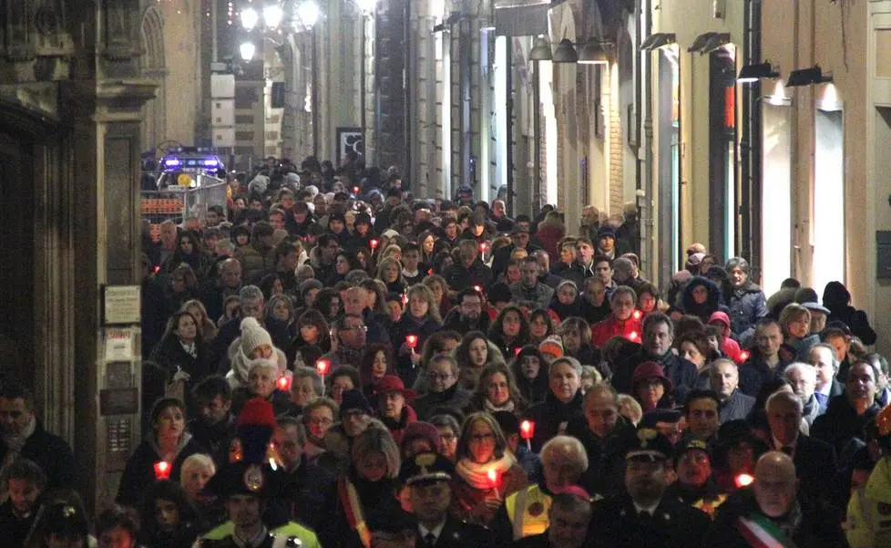 Teramo, folla di cittadini e autorità alla fiaccolata in centro