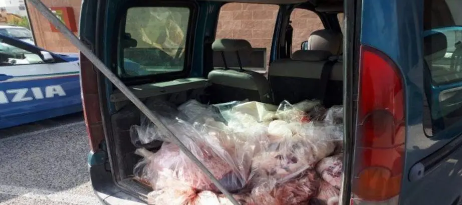 AVEZZANO. CIrca due quintali di carne ovina e 30 chili di pane sono stati sequestrati dalla polizia stradale perché trovati in un mezzo di trasporto non abilitato al trasporto di alimenti, ma solo al trasporto di persone. In pratica la carne di pecora, destinata ad essere trasformata in arrosticini, veniva trasportata su un'autovettura del tipo Doblò dal proprietario al quale è stata ritirata la carta di circolazione. L'uomo rischia di pagare una sanzione di 4mila euro.