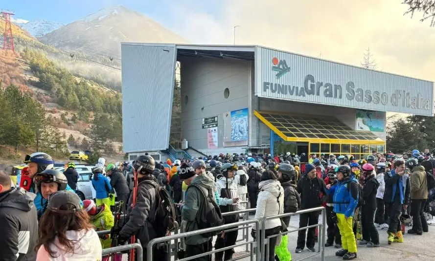L’AQUILA. Overtourism sul Gran Sasso. Con le stazioni sciistiche di Campo Felice e Ovindoli praticamente chiuse e le piste di Roccaraso dimezzate, Campo Imperatore è stato preso d’assalto da sciatori provenienti anche da fuori regione. Oltre 5.000 presenze nel weekend, altre 2.000 nella giornata di ieri. Per qualcuno la domanda ha superato l’offerta: le lunghe file registrate alla base della funivia hanno scatenato polemiche tra gli utenti e aperto il dibattito politico. Alle stilettate del consigliere regionale del Pd Pierpaolo Pietrucci ha replicato prima l’amministratore unico del Ctgs Gianluca Museo e poi si è mosso il centrodestra al Comune dell’Aquila. «Le file registrate nei giorni di maggiore affluenza non rappresentano un fallimento», sottolineano i capigruppo Leonardo Scimia (FdI), Alessandro Maccarone (Aq Protagonista), Daniele D’Angelo (Forza Italia), Daniele Ferella (Lega) e Fabio Frullo (Udc), con il consigliere comunale con delega alla Montagna Luigi Faccia, «bensì il segnale evidente di un rinnovato interesse turistico per il Gran Sasso, oggi unico comprensorio regionale in grado di garantire condizioni sciistiche adeguate. Un dato positivo per l’economia locale, per gli operatori del settore e per l’immagine dell’Aquila come città di montagna viva, attrattiva e frequentata. Ed è proprio su questo punto che s’infrange l’ennesima narrazione strumentale del centrosinistra: si grida allo scandalo per le code, ma si omette un fatto essenziale, ovvero che senza la funivia in funzione non ci sarebbe alcuna fila, perché non ci sarebbe alcun turismo». Secondo la maggioranza, «dietro la proposta di sostituire l’attuale impianto con una telecabina 3S, presentata oggi come soluzione miracolosa, si cela in realtà una scelta irrealistica e potenzialmente dannosa. Si parla di un’opera dal costo stimato tra i 40 e i 50 milioni di euro, da realizzare in un contesto ambientale fortemente vincolato, che comporterebbe anni di blocco, stagioni turistiche compromesse e il rischio concreto di mettere in ginocchio l’intero comparto economico di Campo Imperatore». C’è poi l’ostacolo vincoli: «Chi oggi pontifica dimentica, o finge di dimenticare», aggiungono, «che un’ipotesi analoga esisteva già nel 2009, fu presentata al Comune e non venne mai portata avanti, proprio negli anni in cui Pietrucci ricopriva ruoli apicali nelle amministrazioni guidate dal centrosinistra. Allora come oggi, esistevano i vincoli ambientali, le difficoltà autorizzative e le stesse criticità che oggi vengono strumentalmente ignorate. Nel frattempo, l’amministrazione lavora con serietà a una visione più ampia e concreta di sviluppo, puntando sul Piano speciale territoriale Scindarella-Montecristo, su impianti già finanziati e su un modello di turismo realmente sostenibile, accessibile e sicuro». La stoccata finale: «Ci chiediamo se, dopo l’esclusione dalla corsa a candidato sindaco da parte dei moderati della sua stessa area politica, Pietrucci non stia tentando di recuperare visibilità alzando artificiosamente il livello dello scontro».
