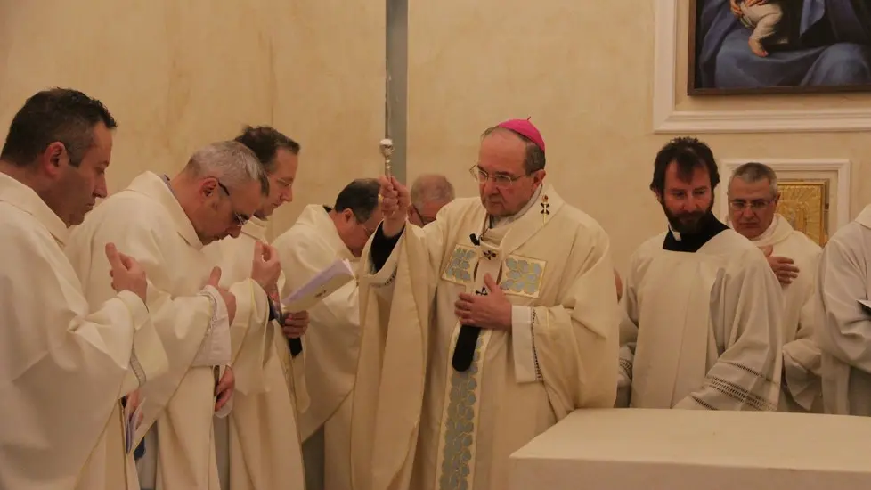 «Oggi non inauguriamo un monumento funebre che parla di morte, ma una testimonianza ecclesiale che promuove la vita», ha detto, prima di versare il sacro Crisma sull’altare, lentamente, ungendo tutta la mensa. Un luogo, quello della piccola cappella, fino a sei anni fa frequentato soltanto dai clienti di una libreria; oggi è «il rifugio per la preghiera, la rinascita e la memoria», riportato dai tecnici e dai retauratori allo splendore originario, con il pavimento risollevato e le volte – realizzate nel 1775 e poi affrescate dal Patini nel 1800 – riscoperte dopo anni in cui erano rimaste nascoste dal cartongesso. Per ristrutturare l'intero complesso monumentale ci sono voluti 1,7 milioni di euro; ora, per procedere con il restauro della volta affrescata dal Patini ci vorranno donazioni da parte di privati, che ancora non ci sono. Già ammontano a 250mila euro le risorse raccolte grazie ai privati, la somma rimanente per coprire i costi verrà dalle donazioni dei fedeli e dei cittadini. L'emozione avvolge chi entra in cerca di preghiera nella cappella, L'altare, realizzato in pietra bianca di Poggio Picenze, ha la forma tipica del simbolismo cubico medievale della croce chiusa, con inciso l'Angelo della Resurrezione, ed è sovrastato dallo splendido crocifisso riproduzione di quello settecentesco di San Marco. Alle sue spalle, l'affresco "Salus populi aquilani", Salvezza del popolo aquilano, la Madonna che veglia sugli aquilani dal sisma del '700. Tutti gli elementi della cappella dedicata alle vittime sono stati donati da benefattori privati. Colpiscono le lapidi con i nomi scolpiti dei 309 angeli del terremoto. Una messa commemorativa delle vittime si terrà tutti i sabati alle 11. Uscendo, al termine della liturgia, monsignor Petrocchi si è rivolto ai familiari: «Non vi posso abbracciare uno per uno ma vi ho nel cuore e prego per voi».